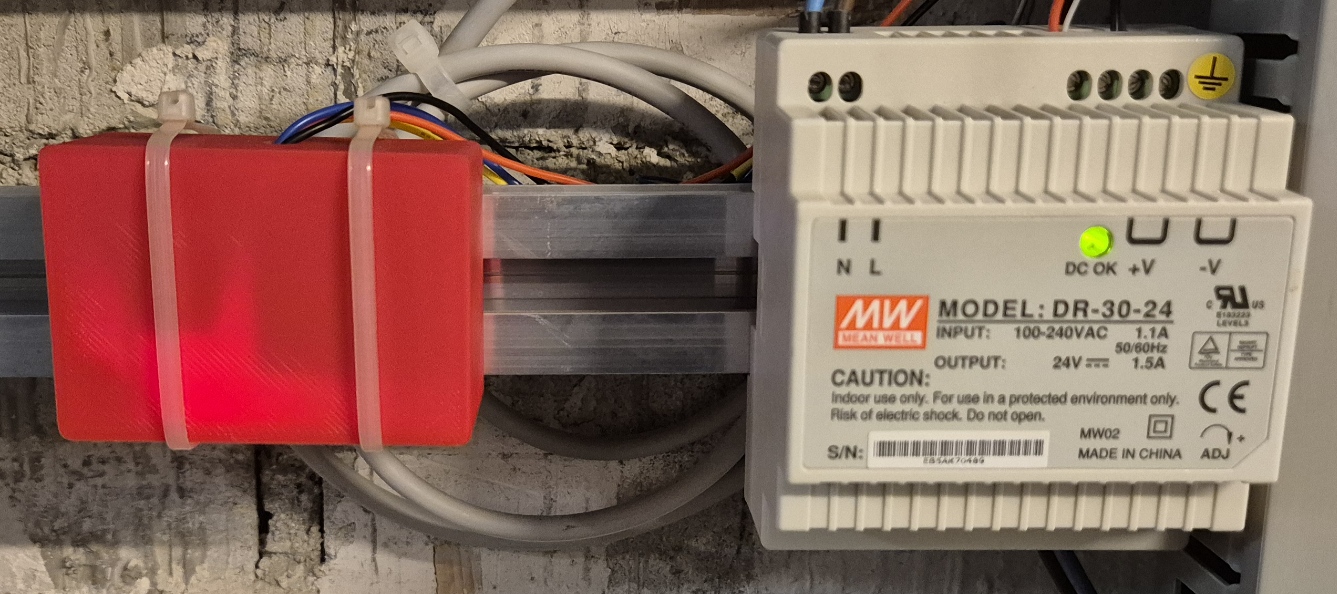 Hier sieht man das Fertige eingebaute Modul im Schaltschrank. Nebenan das Netzteil für die Türe.