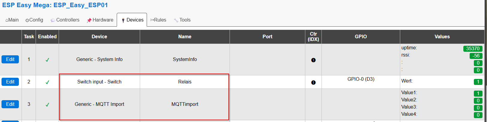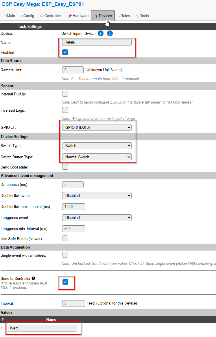 Als Software verwende ich ESP EASY für den ESP01
