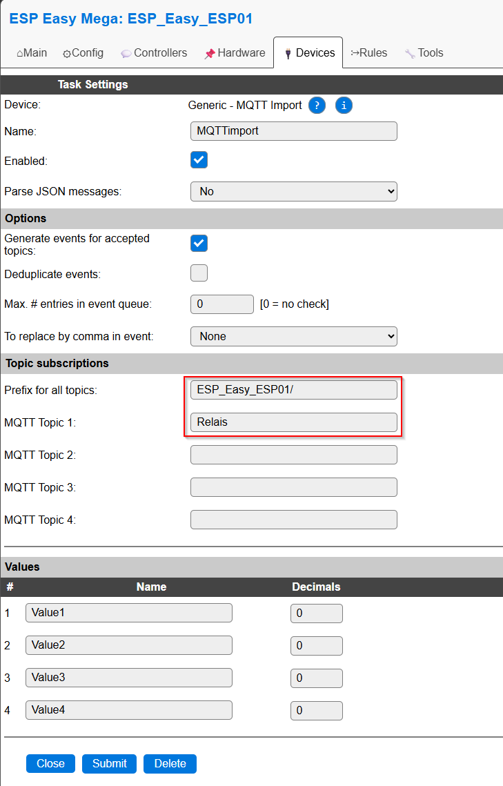 Dann benötigen wir noch ein Device vom Typ Generic - MQTT Import